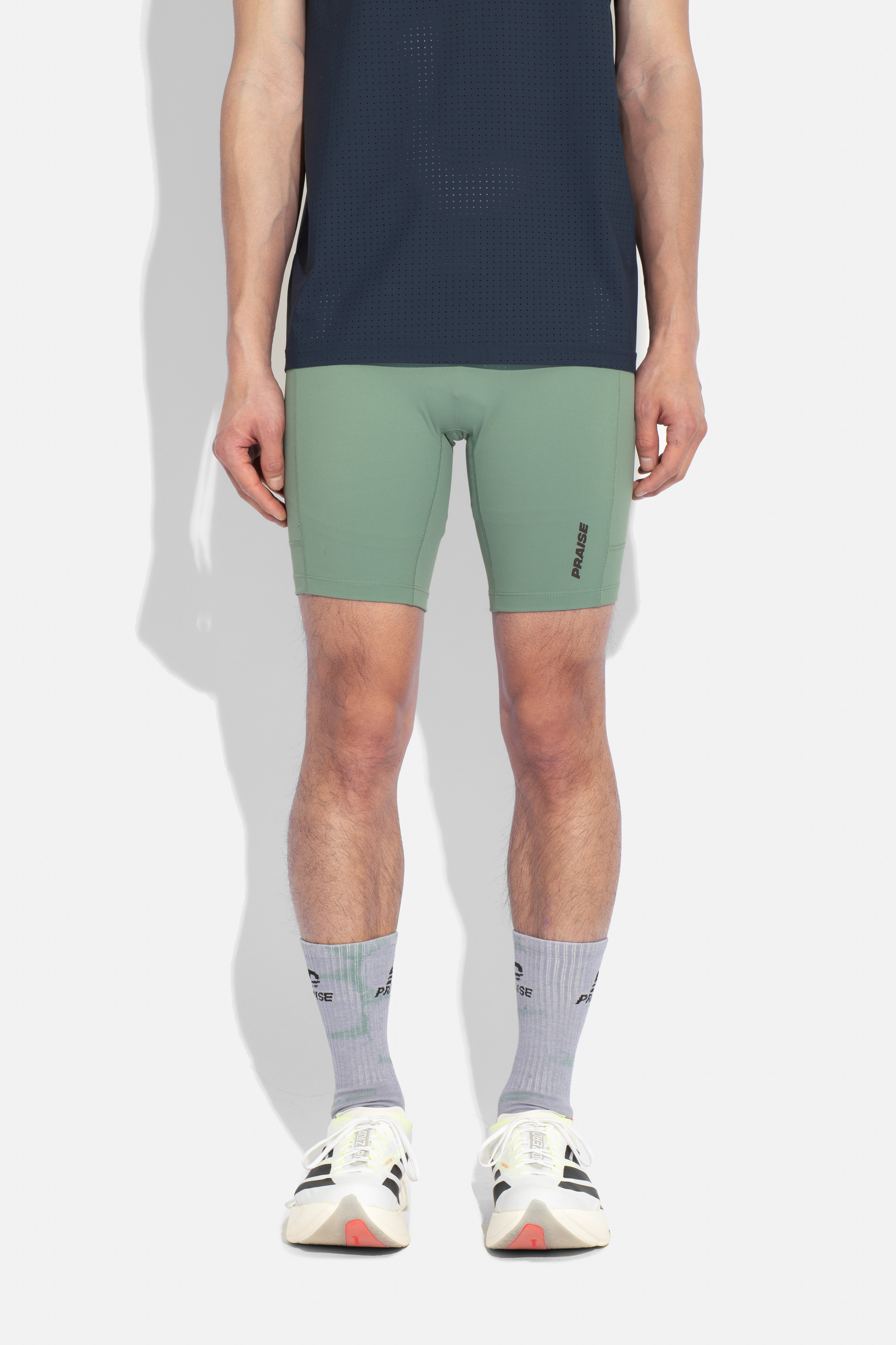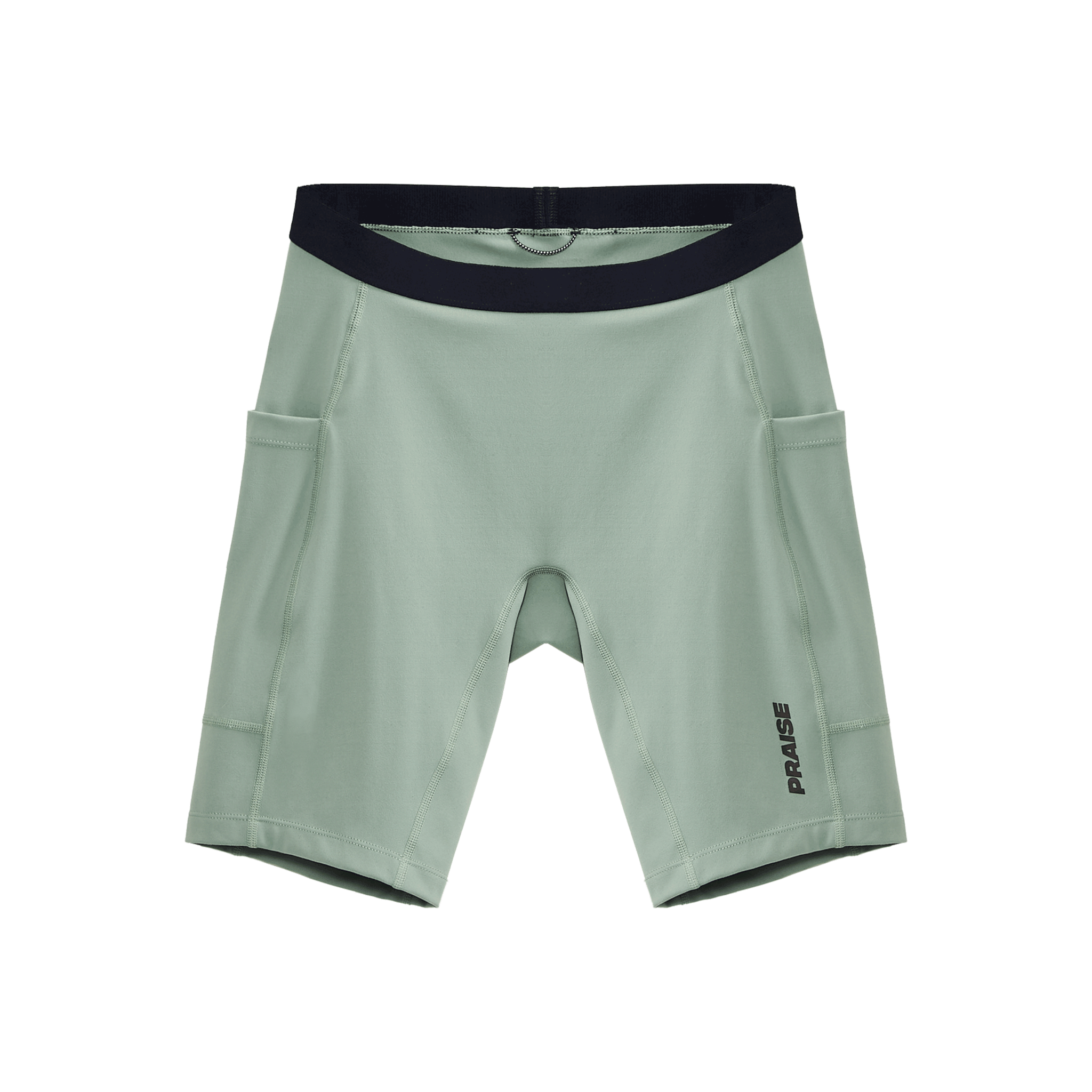 7" compression tights with side pockets. Seamless front construction, soft elastic waistband.