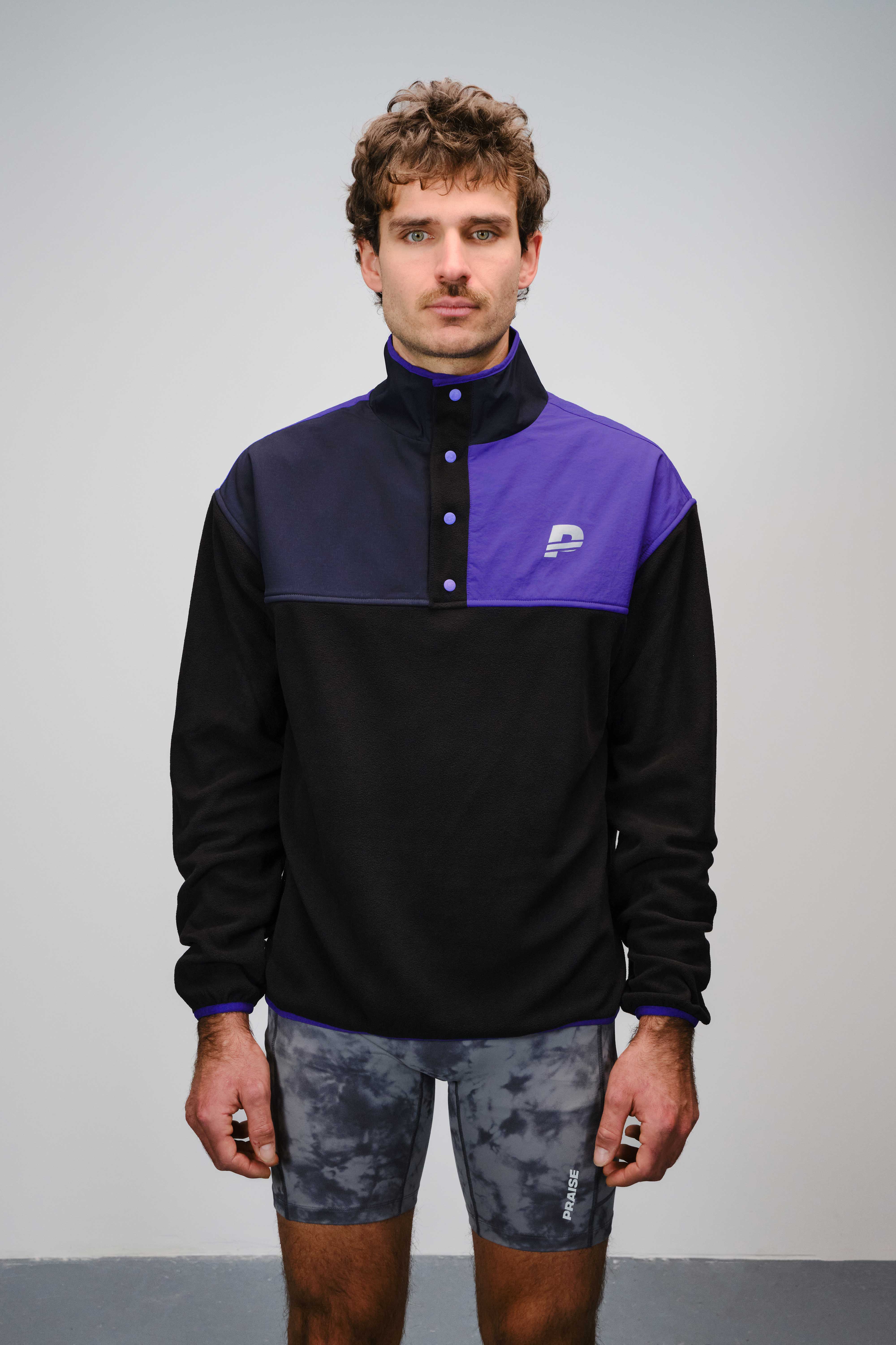 Midweight polar fleece layer with front snap closure. Windproof and water repellent ripstop colorblocking at shoulders, chest and back. Reflective PRAISE logo at chest and back.