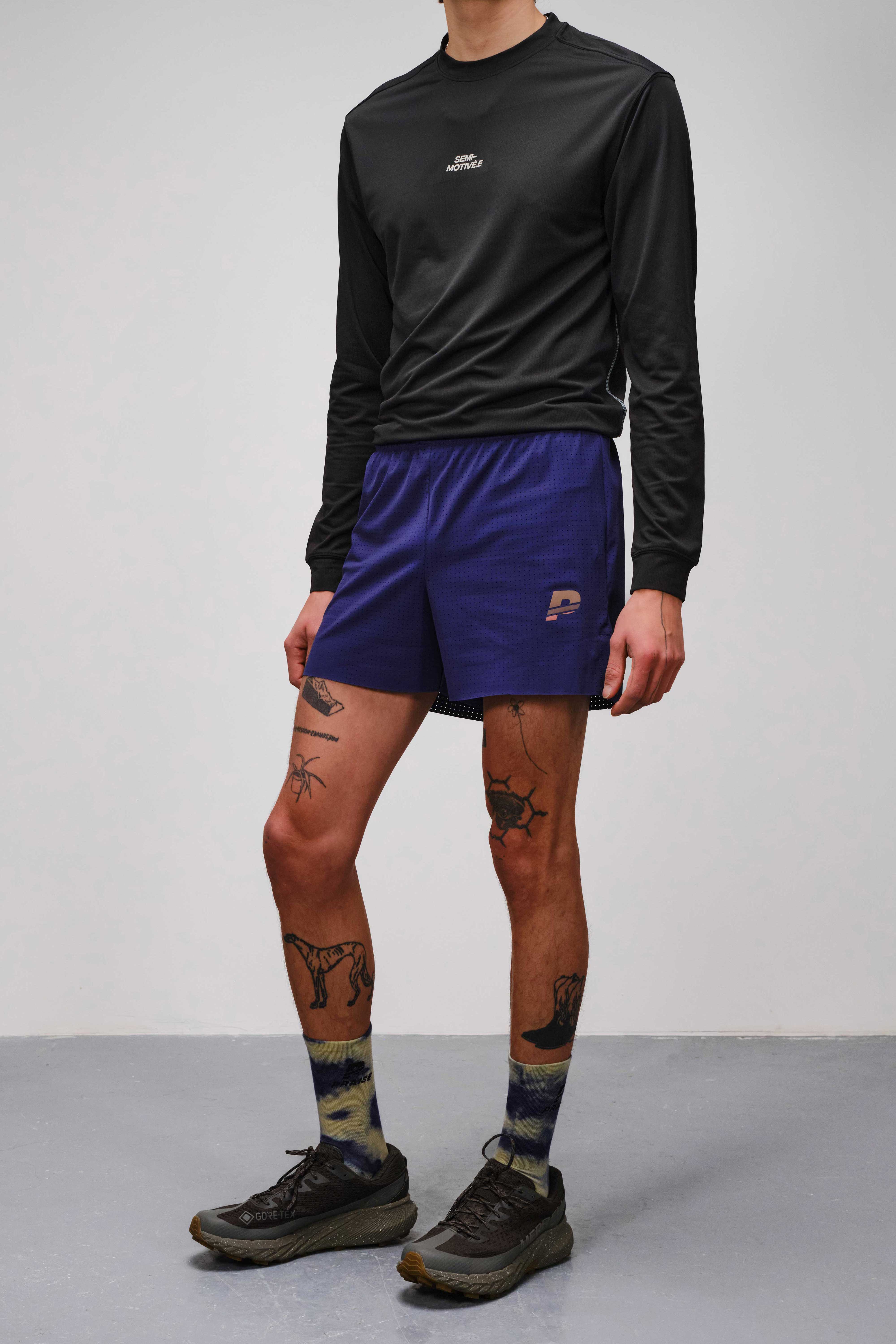 4" laser cut mesh shorts. Inner liner made in soft knit with pockets at both sides, adjustable waist cord. High density prints at front and back.