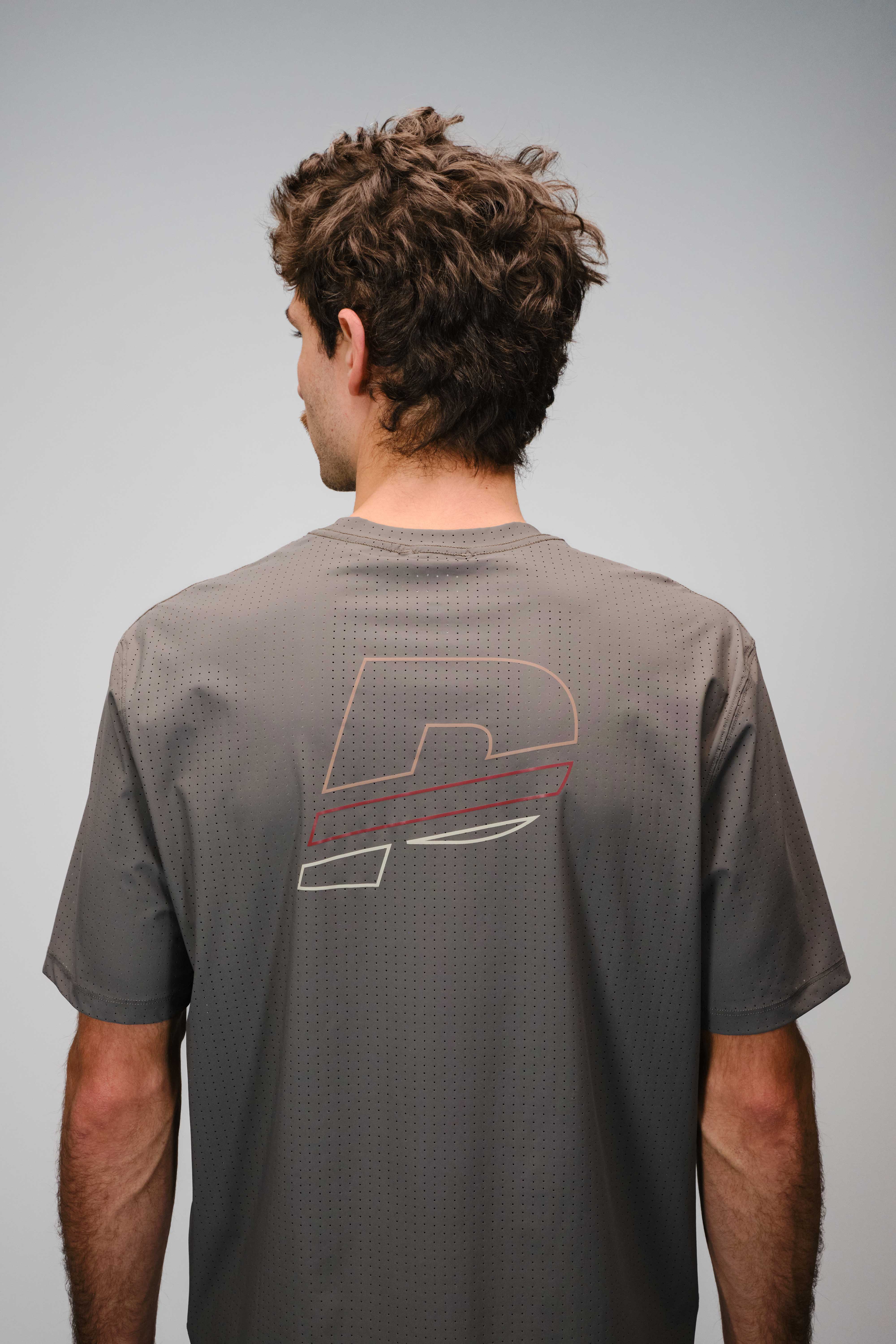 Lightweight running t-shirt made from breathable, laser cut and stretch performance mesh. Reflective print at chest and reflective logo at back.