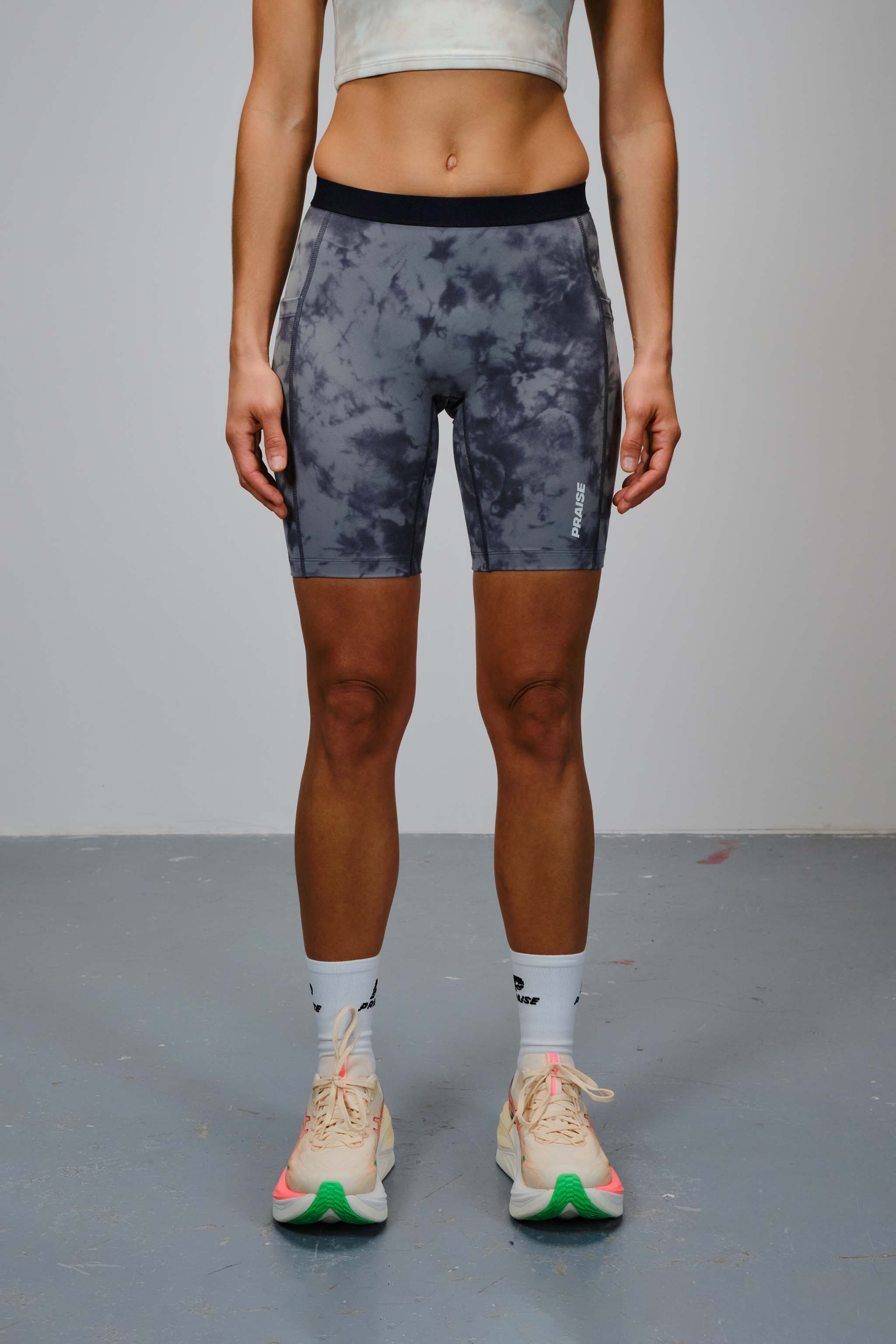 7" compression tights with side pockets. Seamless front construction, soft elastic waistband.