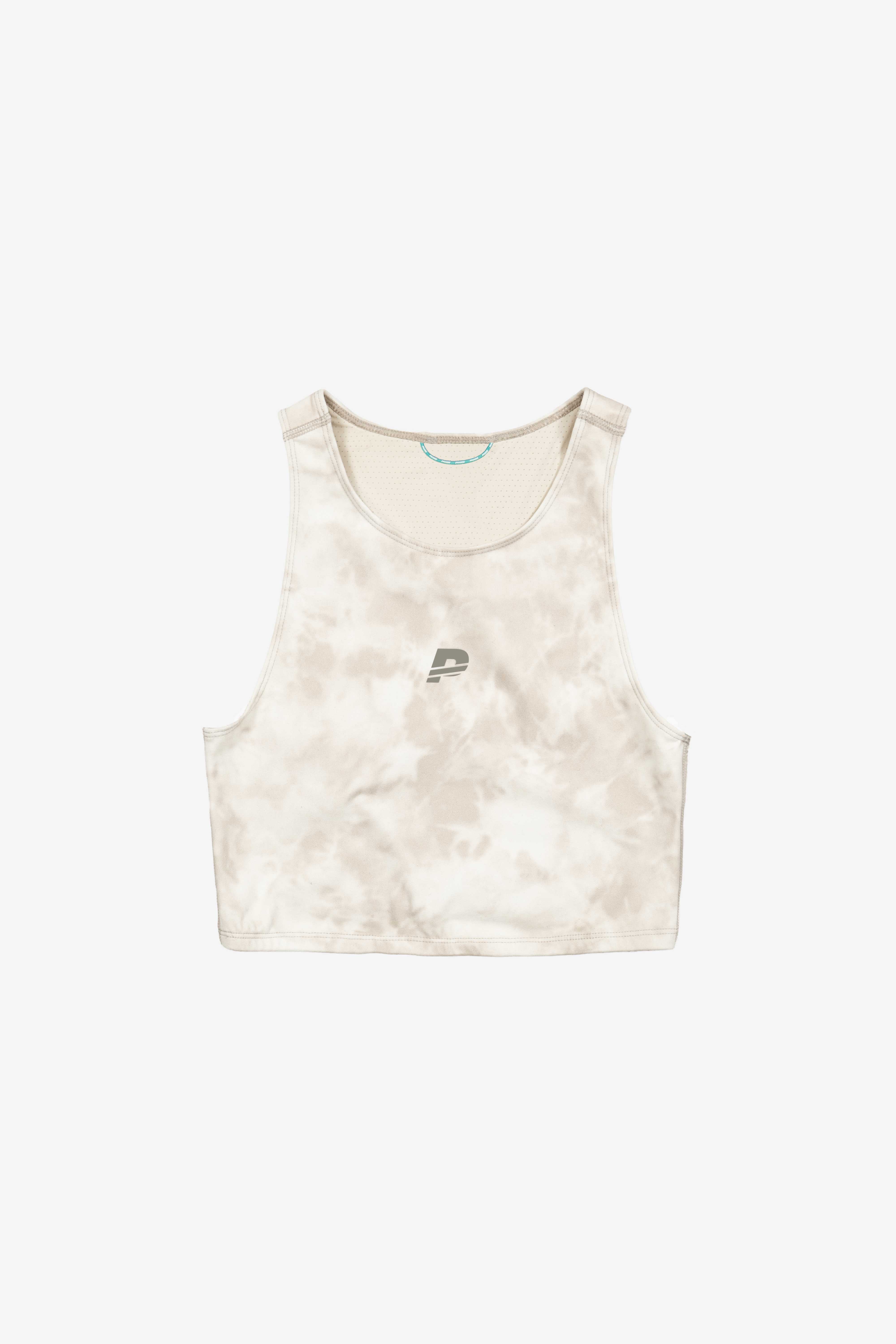 Women's stretch sports crop top with a high neck. Made in shape soft knit for low intensity activities. High density prints at front and back.