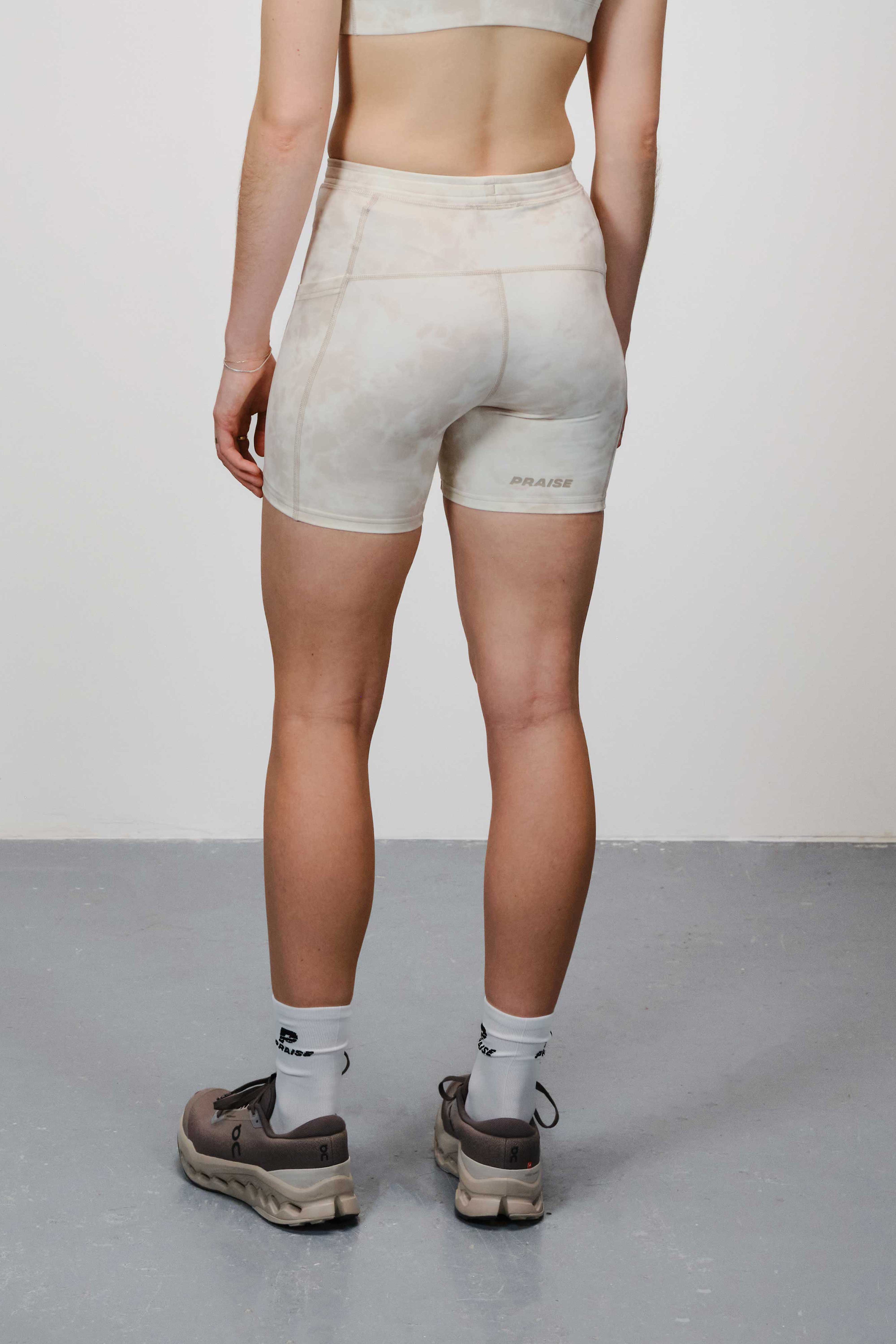 Technical short with side pockets. Quick dry. Inner back pocket for gel, card, and/or keys. Adjustable drawcords at waist. High density logo print on the side.
