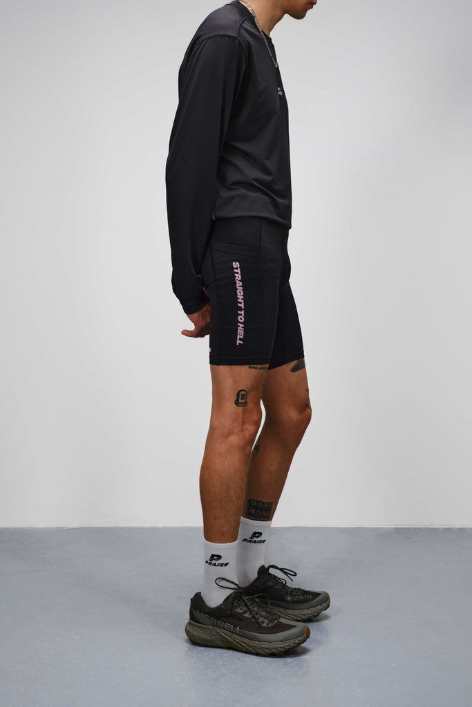 Collant technique avec poches latérales. Maille performante à séchage rapide. Cordons élastiques réglables à la taille pour un confort optimal pendant la course. Logo PRAISE réfléchissant imprimé devant et derrière.