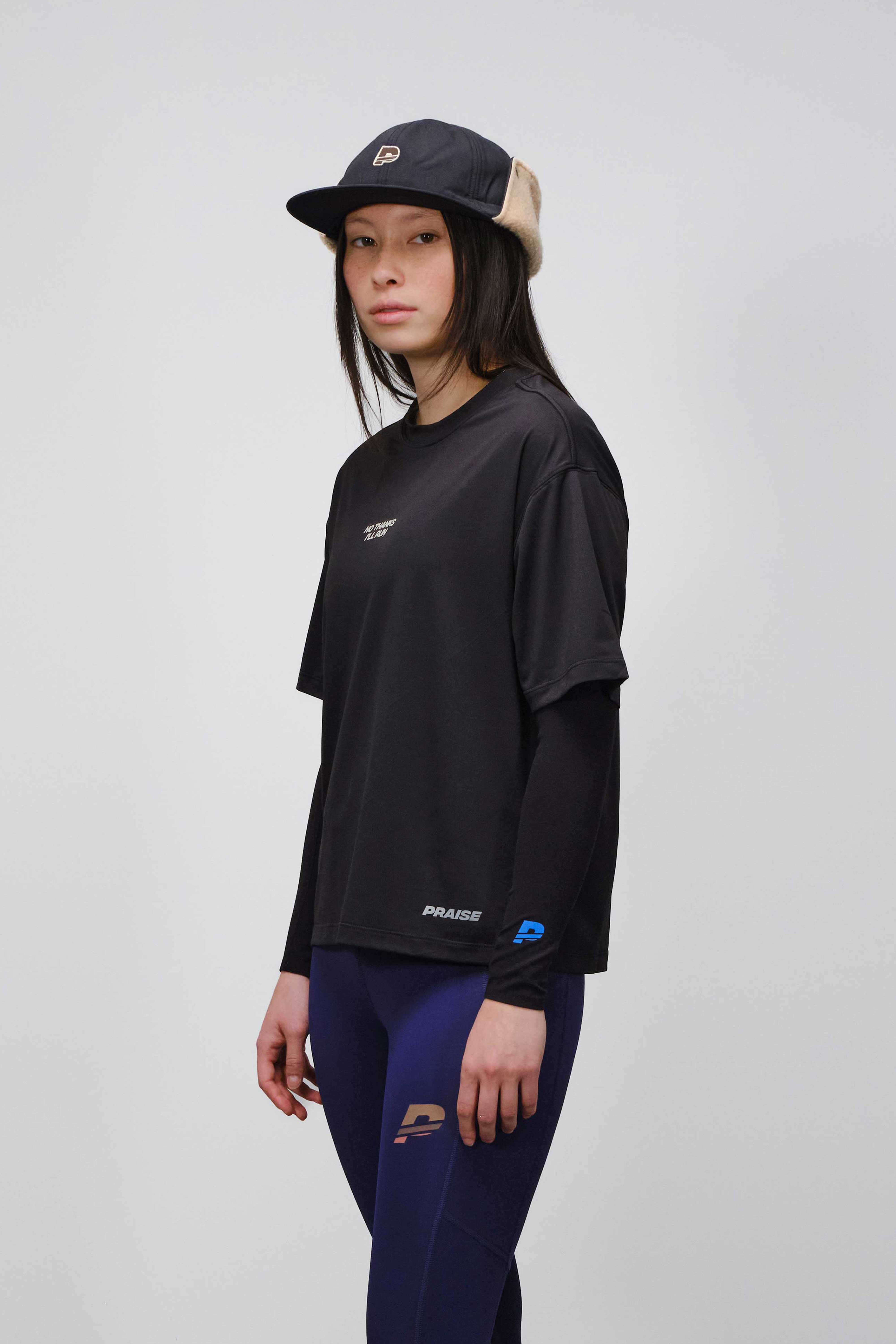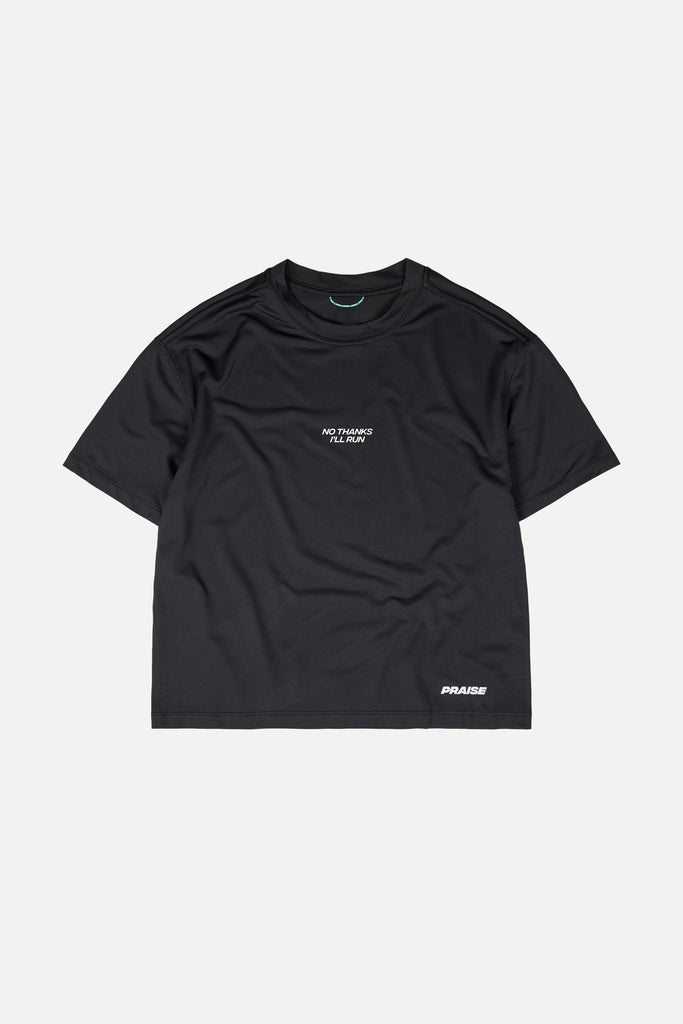 T-shirt de course court graphique fabriqué en tissu synthétique ultra-léger. Conçu avec des slogans réfléchissants à l’avant, disponibles en quatre versions: Sraight to Hell / No Thanks I'll Run / Running Causes Mindfulness / Semi-Motivé.e