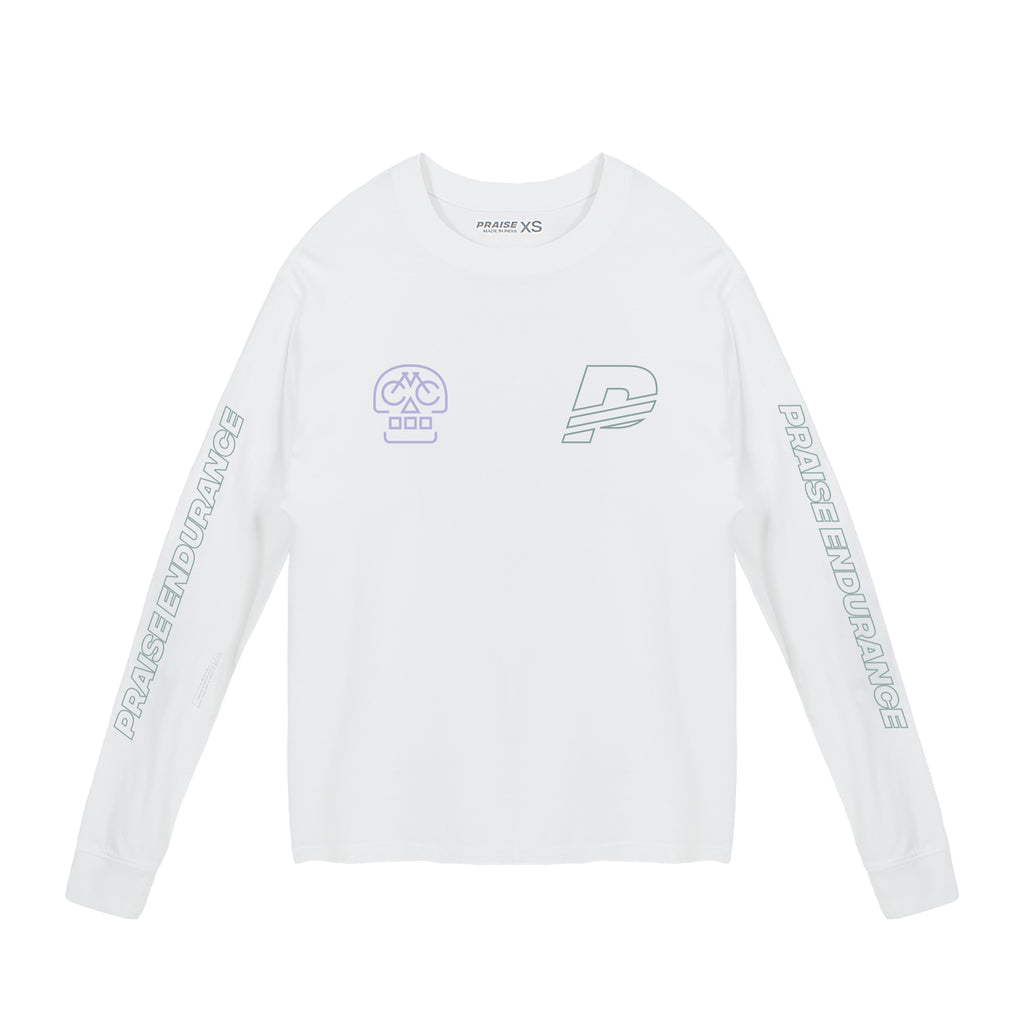 Haut à manches longues en jersey avec délavage à la lave pour un effet nuageux et délavage minéral pour une sensation de tissu extra doux. Imprimé réfléchissant PRAISE sur le devant et imprimés réfléchissants aux coudes. Côtes pour éviter les évasements au niveau du cou et des poignets.
