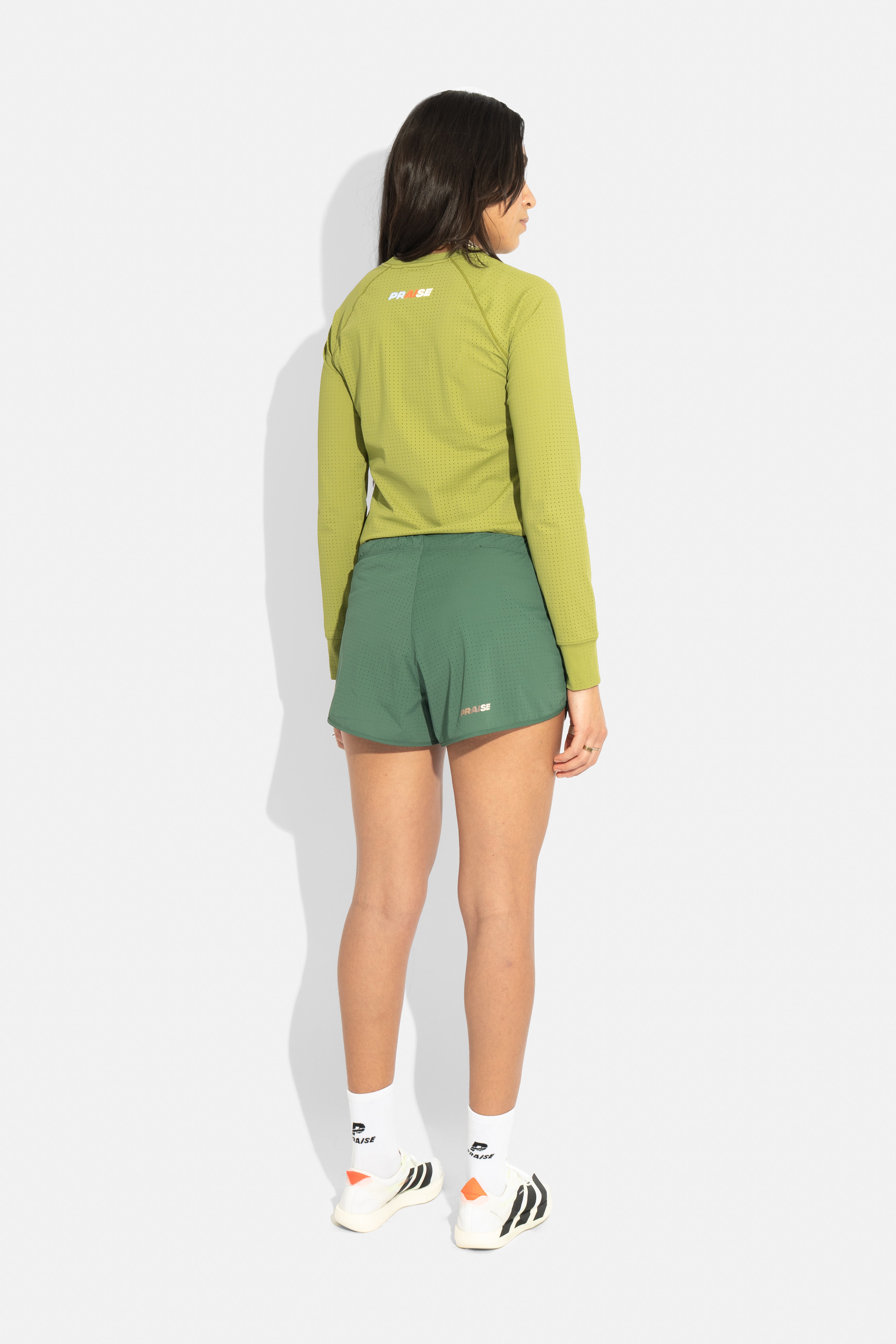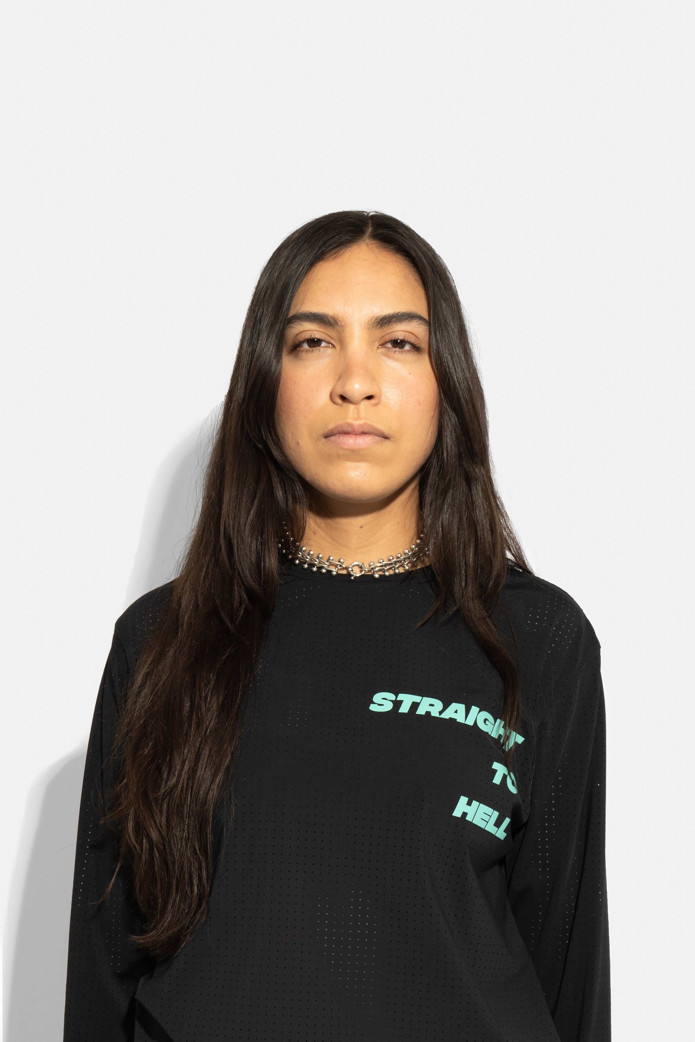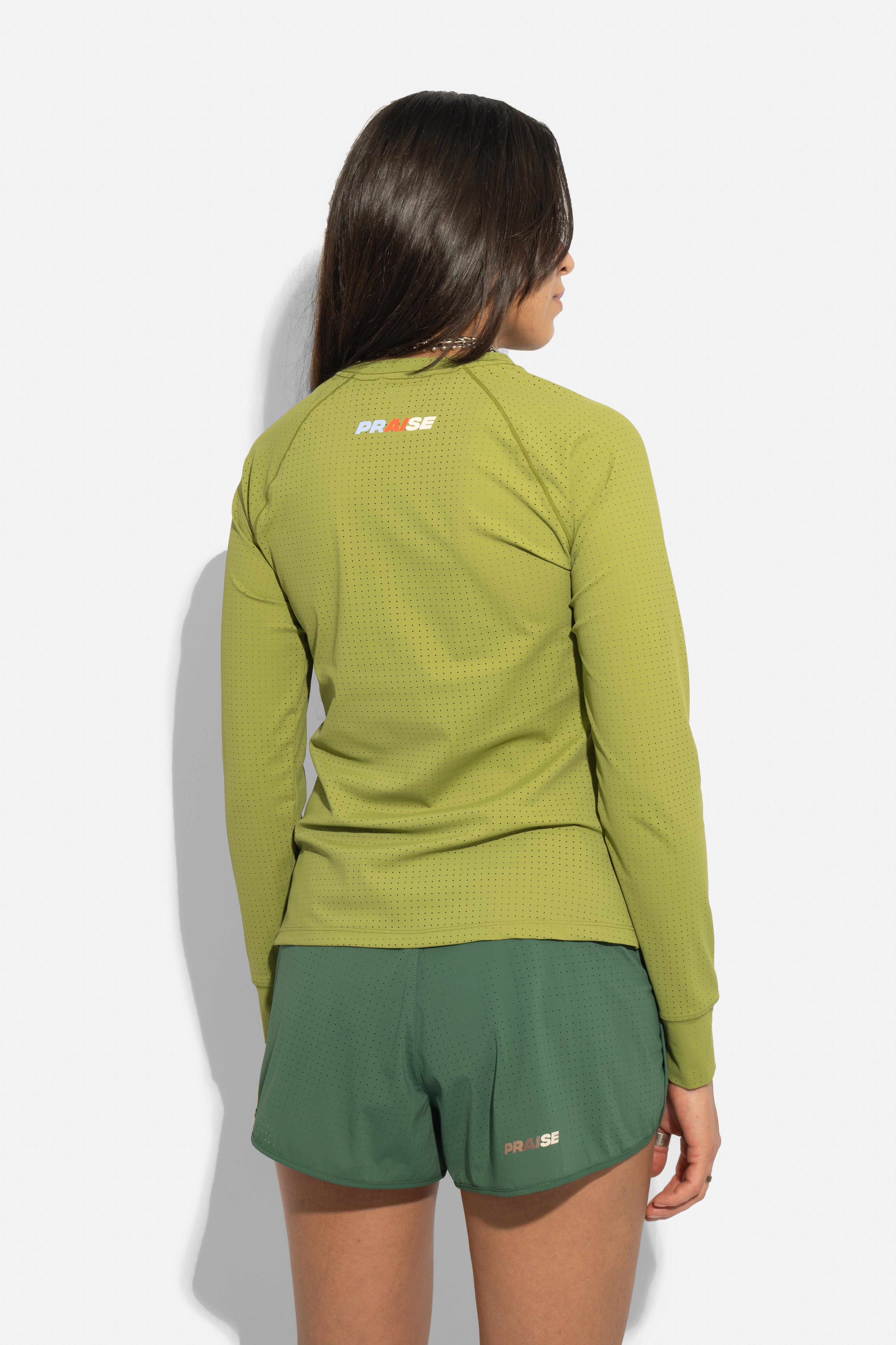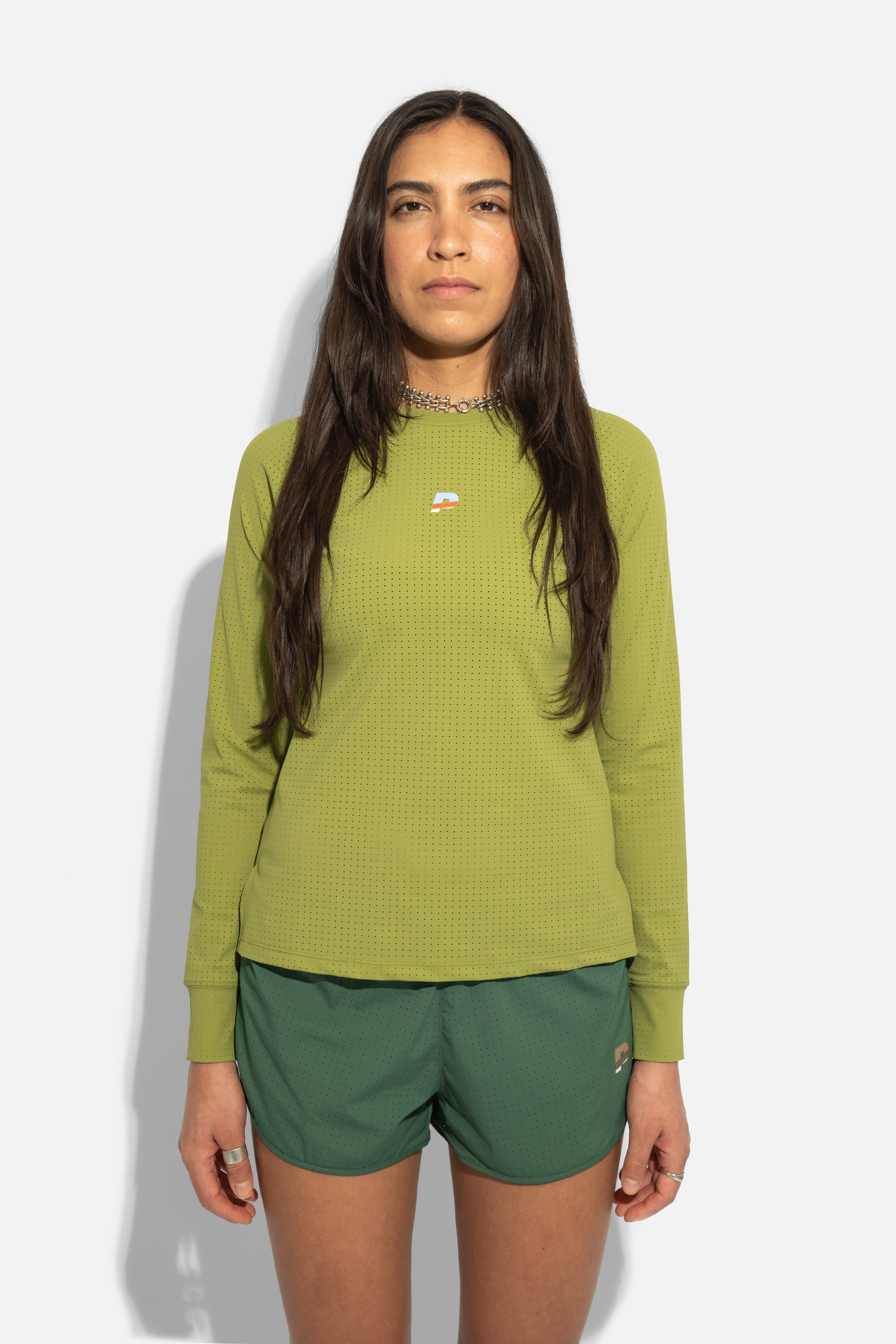 Lightweight running long sleeve top made from breathable, laser cut and stretch performance mesh. High density print at chest and back.