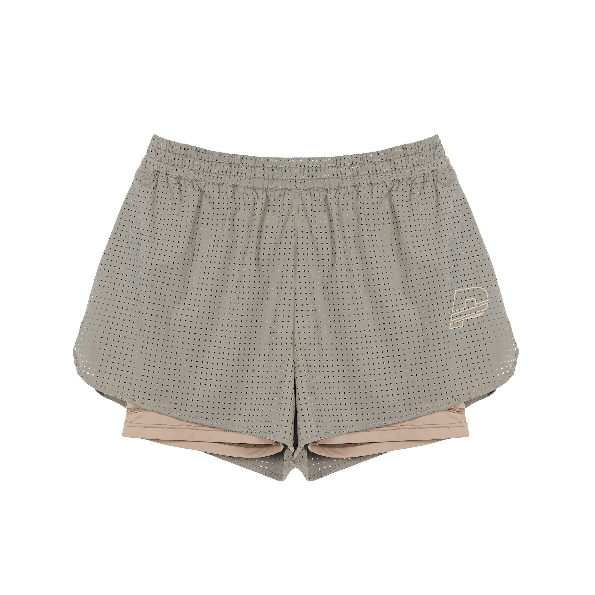 Lightweight running shorts made from breathable, laser cut and stretch performance mesh. Lightweight liner shorts with pockets on both sides. Adjustable looped elastic cord at waistband. Reflective prints at front and back.